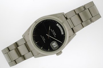 Herrearmbåndsur fra Tudor, model "Prince Date-Day", ref.nr.: 76200, m. kasse og lænke af stål, sort skive m. stregindeks, ugedagsangivelse ved 12" position, datoangivelse ved 3" posiion, Rolex-krone, manuelt optræk, safirglas. Ø. 35,6 mm.