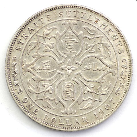 Straits Settlements, Edward VII, Dollar, 1907 H, sølv