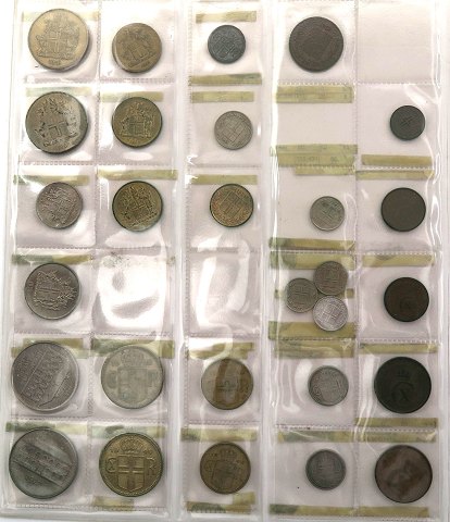 Mønter i værdierne 1 øre – 50 kr., repræsenterende perioden 1926 – 1970.