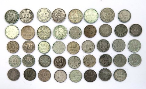 Christian IX / Frederik VIII / Christian X, 32x 10 øre og 11x 25 øre.