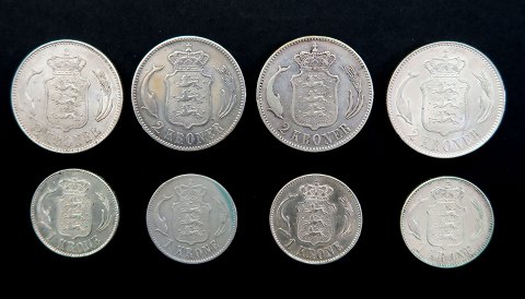 Christian IX / Christian X, 2 kr. og 1 kr. sølv 1875 ~ 1916 (8)