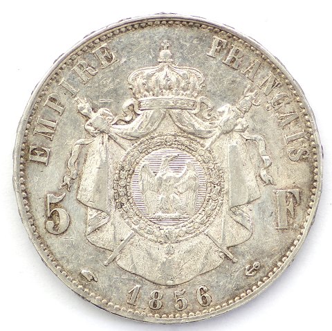 Frankrig, 5 Franc, 1856 A, sølv, 25.00 gr., .900, KM# 694.1