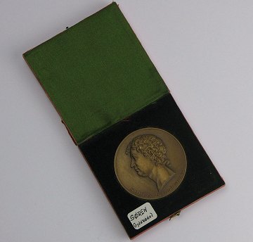 Jubilæumsmedaille af bronze, præget i anledning af 250 året for oprettelsen af Søren Gyldendals Boghandel. Ø. 49,8 mm.