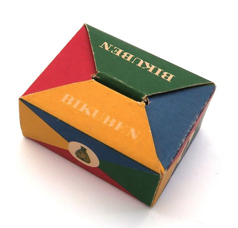 Bikuben, sparebøsse fra 1950'erne af foldet pap med logo tryk