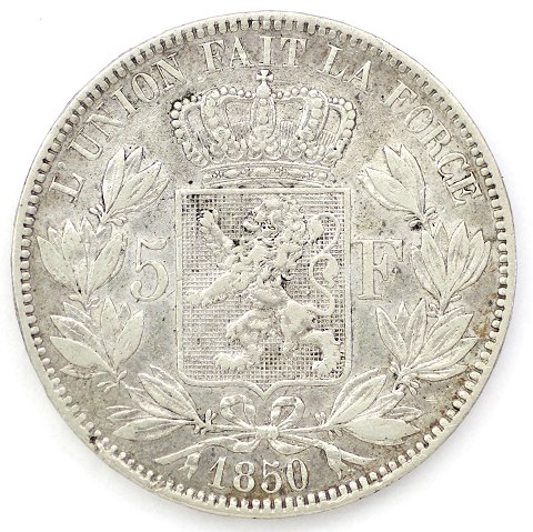 Belgien, Leopold I, 5 Francs, 1850, sølv