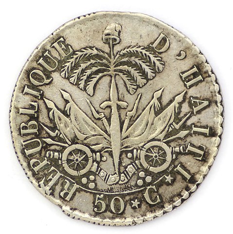 Haiti, 50 Centimes, AN 25(1828), sølv