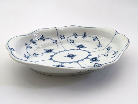 Royal Copenhagen, dyb brødfad, musselmalet, riflet med buet, svejfet kant. L. 31 cm., 1. sortering.