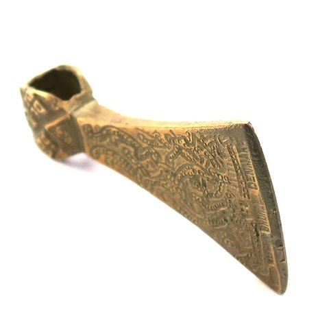 Museum kopi smykkevedhæng af bronze, dekoreret med ornamentik fra vikingetiden. L. 5,5 cm.