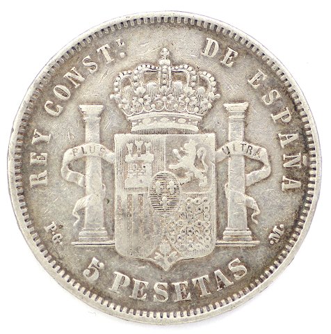 Spanien, Alfonso XIII, 1892, 5 Pesetas, sølv