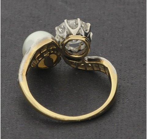 Ring af 2-farvet guld, prydet med diamant på 1,0 ct. og kulturperle