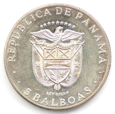 Panama, 5 Balboas, 1970, sølv, 35.70 gr., .925, KM# 28