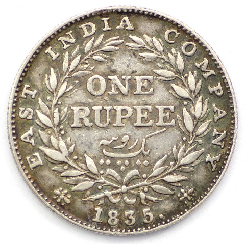 Indien, William IIII, Rupee, 1835, sølv, 11.66 gr., .917, KM# 450
