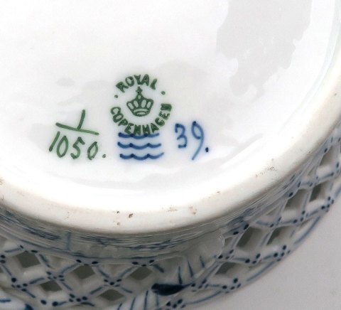 Royal Copenhagen, musselmalet helblonde frugtkurv #1050