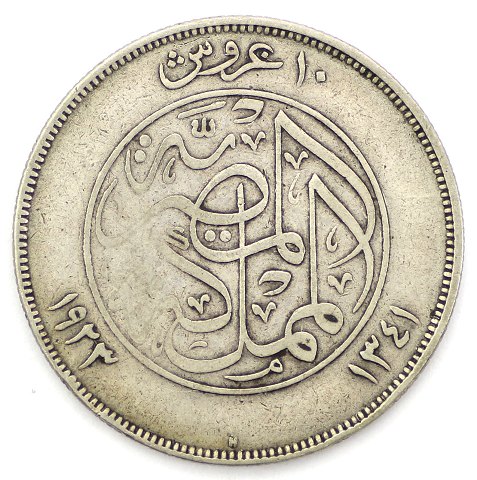 Ægypten, Fuad I, 10 Piastre, AH1341/1923, sølv
