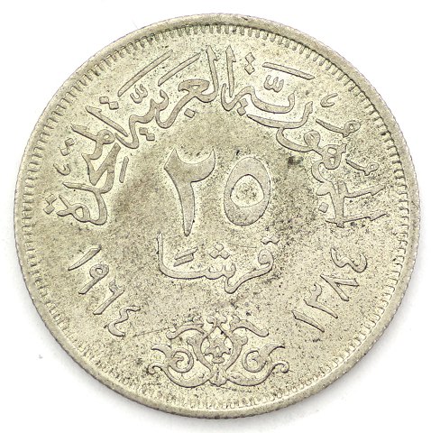 Ægypten, 25 Piastre, AH1384/1964, sølv