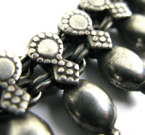 Tungt, orientalsk mønstret collier af sølv med flettet lukke, L. 41 cm., vægt 89 gr.