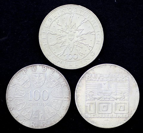 Østrig, 100 Schilling, 1975 KM# 2924, ND(1976) KM# 2930 og 1978 KM# 2939, sølv