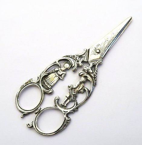 Antik druesaks af sølv, dekoreret med klassiske figurer, volutter og ciseleringer. L. 14 cm., vægt ca. 41 gr. 19. årh. slutning.