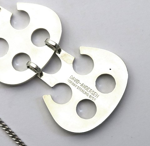 Norsk David Andersen halssmykke bestående af tredelt vedhæng og halskæde af sterling sølv. Kæde L. 50 cm., vedhæng L. 80 mm., samlet vægt ca. 22 gr.
