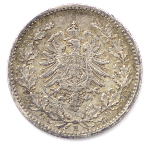 Tyskland, Wilhelm I, 50 Pfennig, 1877 B, sølv, 2.78 gr., .900, KM# 8