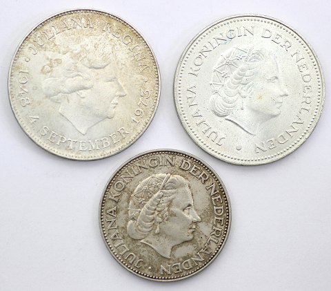 | Holland, Juliana, 2½ Gulden, 1960, 10 Gulden ND(1970) samt 10 Gulden 1973, sølv