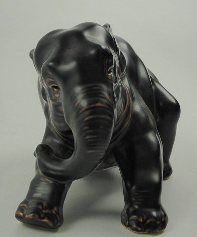 Elefant, liggende, af brunt stentųj, Royal Copenhagen