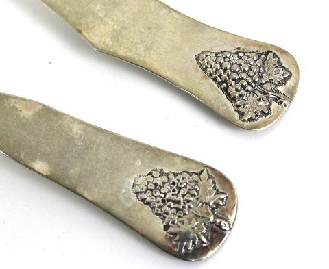 Par violinskeer med dekoration i form af påsatte drueklaser, samlet vægt 107 gr. Mester Martin Richard Nannsen Tønder, borgerskab 1849