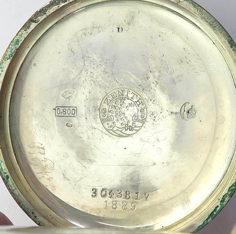 Lommeur af sølv med hvid emailleret skive, romertal og 24 timer i arabertal samt separat sekundviser. Manuelt mekanisk optrækværk cal. 223. Urkasse diameter 53 mm.