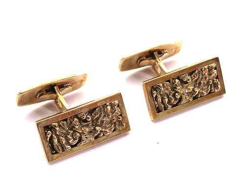 Par manchetknapper af 14 kt. guld med front i form af indrammet nugget, 22 x 10 mm. Samlet vægt ca. 16 gr. Design, Guldsmed Axel Holm - København.