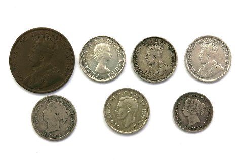 Canada, Victoria, George V, George VI og Elizabeth II, 5 Cents, sølv og 10 Cents, sølv + 1 cent 1917(7)