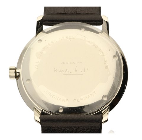 27.4700 1107 - 3298. Kasse af stål 39 mm diameter. Hvid skive med arabertal/stregindex. Sort læderrem med stålspænde. Uret er fabriksnyt.Nypris 6699,- stammer fra ophør,