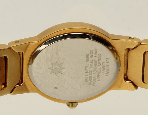 Quartz, 57/5886, kasse og ledlænke i stål, kobberfarvet. Urkasse 21 x 25 mm. Sølvmetallic skive med punktmarkering. Uret er fabriksnyt. Nypris 698,- stammer fra ophør.