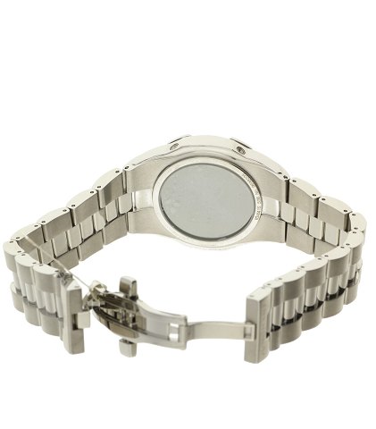 10/4415. Kasse og ledlænke af stål. Urkasse 35 mm diameter. Sølv skive med arabertal/stregindex. Uret er fabriksnyt. Nypris 3995,- stammer fra ophør.