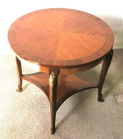 Stilmøbel lampebord af mahogny, ben med messing dekorationer. Diameter 55 cm., H. 50 cm.