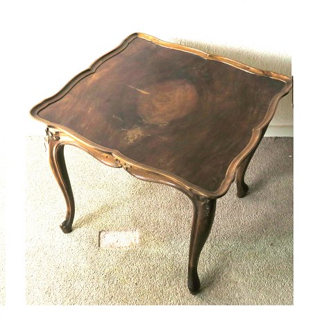 Stilmøbel lampebord med svejfede ben og buet, sveifet kant. Sarg med skæringer i form af bladværk. 57 x 57 cm., H. 52 cm.