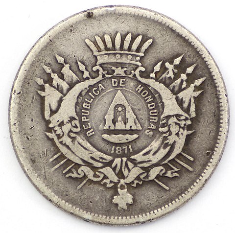 Honduras, 50 Centavos, 1871, sølv, 12.50 gr., .900, KM# 37