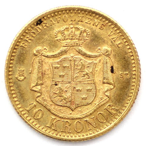 Sverige, Oscar II, 10 kr., 1874, guld, Sieg 86