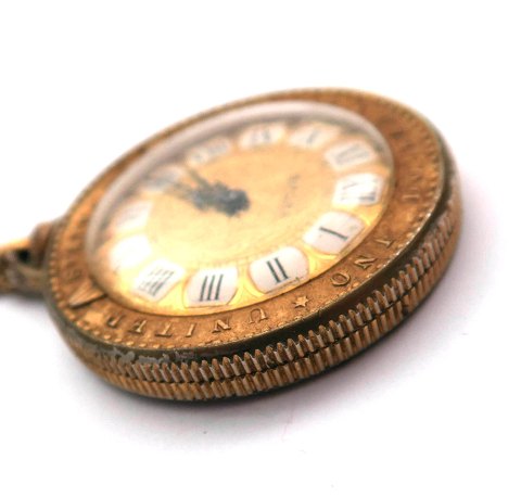 Lommeur af forgyldt sølv, monteret i Dollar sølv fra 1888 (kopi)