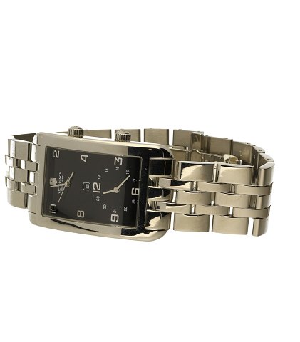 V.25111, water restistent 30 m. Urkasse og ledlænke af rustfrit stål, foldelås. Urkasse 31 x 40 mm. Sort skive med arabertal, safirglas. Fabrisnyt, nypris 3700,- stammer fra ophør.
