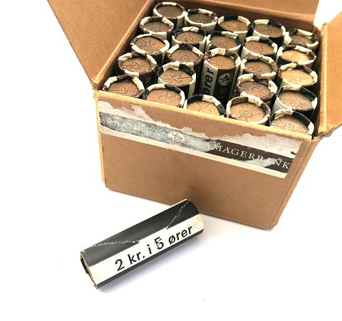 Danmark, 50 kr. i møntruller med 5 øre i kasse fra*Amagerbanken* (25)
