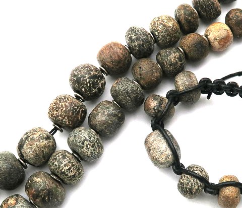 Halssmykke og armlænke af forarbejdet, fossilt elfenben, begge med justerbar længde. Fossilt elfenben findes i sydøtsasiens urskove.
