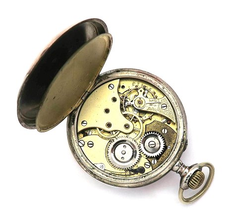 Lommeur af sølv med hvid emailleret skive, arabertal og stregindikation samt separat sekundviser. Manuelt mekanisk optræksværk nr. 69413. Urkasse diameter 50 mm.