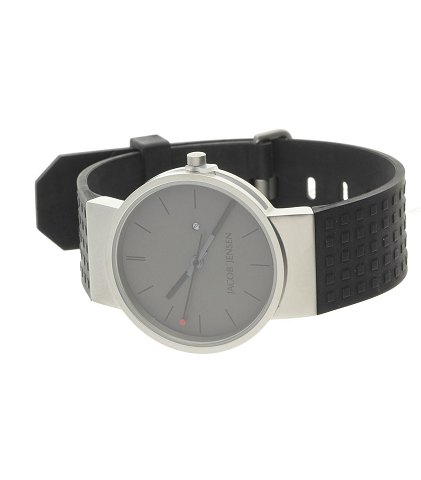 Swiss made, water resistent. Urkasse af rustfrit stål 36 mm diameter, grå skive med stregindex, safirglas. Sort gummirem. Fabrisnyt, nypris 1995,- stammer fra ophør.