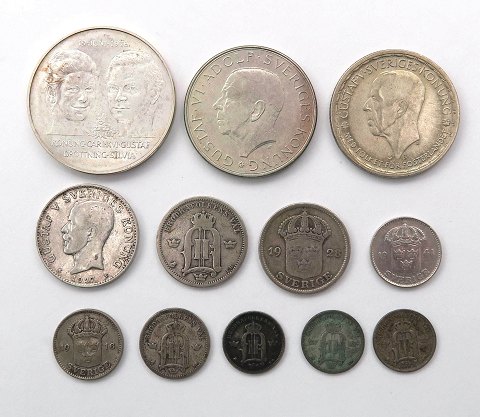 Sverige, 10 öre, 25 öre, 50 öre, 1 kr., 2 kr., 10 kr. og 50 kr. - alle sølv (18)