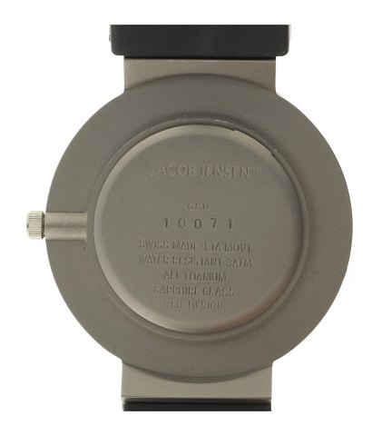 Swiss made, water resistent, urkasse af titanium 36 mm diameter, sort skive med stregindex, safirglas, sort gummirem. Fabriksnyt, nypris 1995,- stammer fra ophør.