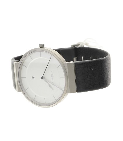 Swiss made, water resistent, urkasse af rustfrit stål 39 mm diameter, sølv skive med stregindex, safirglas, sort læderrem. Fabriksnyt, nypris 2595,- stammer fra ophør.