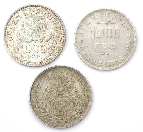 Brasilien, 1000 Reis, 1907(KM# 507), 1912 (KM#510) og 1913A (KM#513), sølv(3)