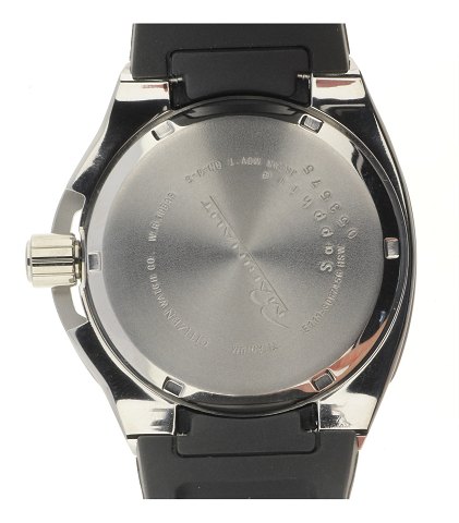 Quartz, urkasse af titanium , 46 mm diameter, sort skive med arabertal/stregindex, Safirglas. Sort gummirem. Fabriksnyt, nypris 1995,- stammer fra ophør.