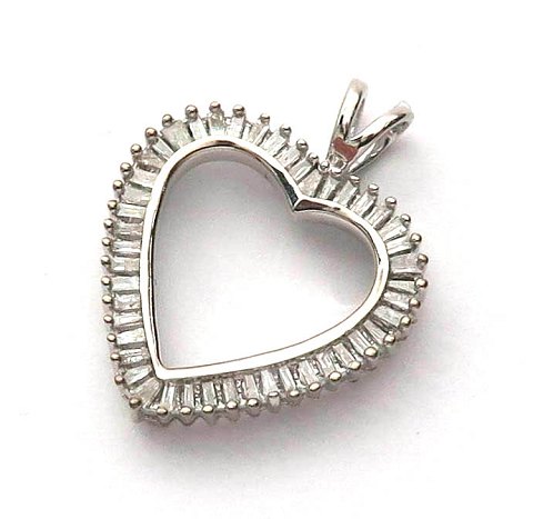 Hjertevedhæng af 14 kt. hvidguld med baquette diamanter ca. 1,0 ct.