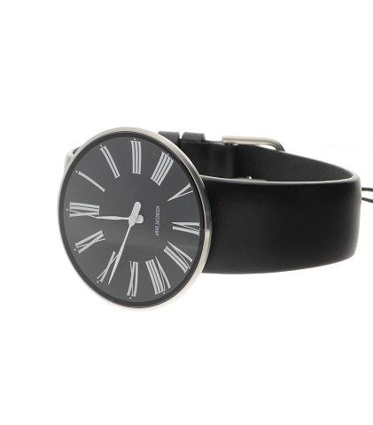 Automatisk, urkasse af stål 40 mm diameter, sort skive med romertal, hærdet glas, sort læderrem. Fabriksnyt, nypris 2895,- stammer fra ophør.
